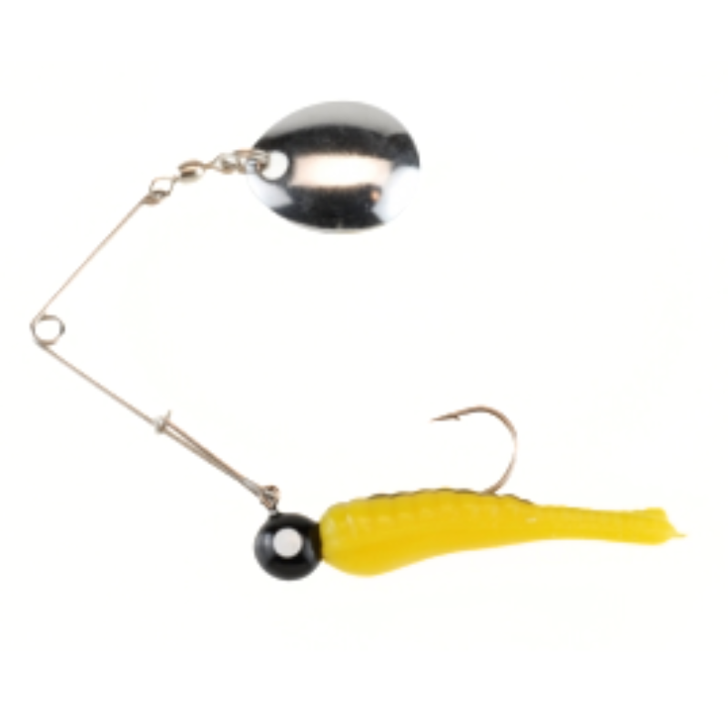 Flicker Snelled Hook. Gold Spinner. Long Shank Gold Hook. 8″ Monofilament. 6 Per Package.