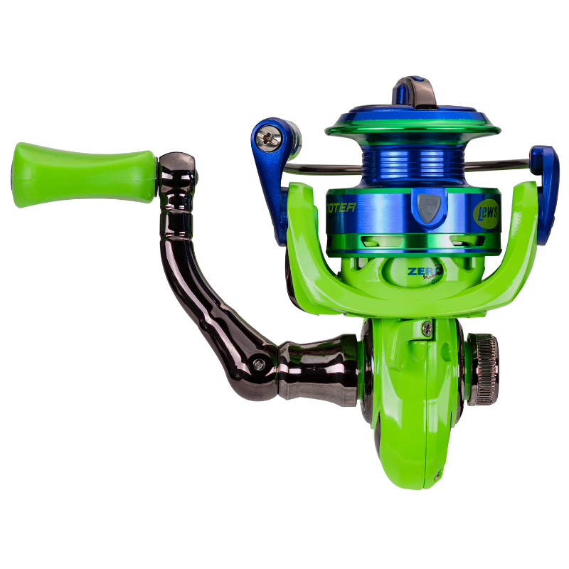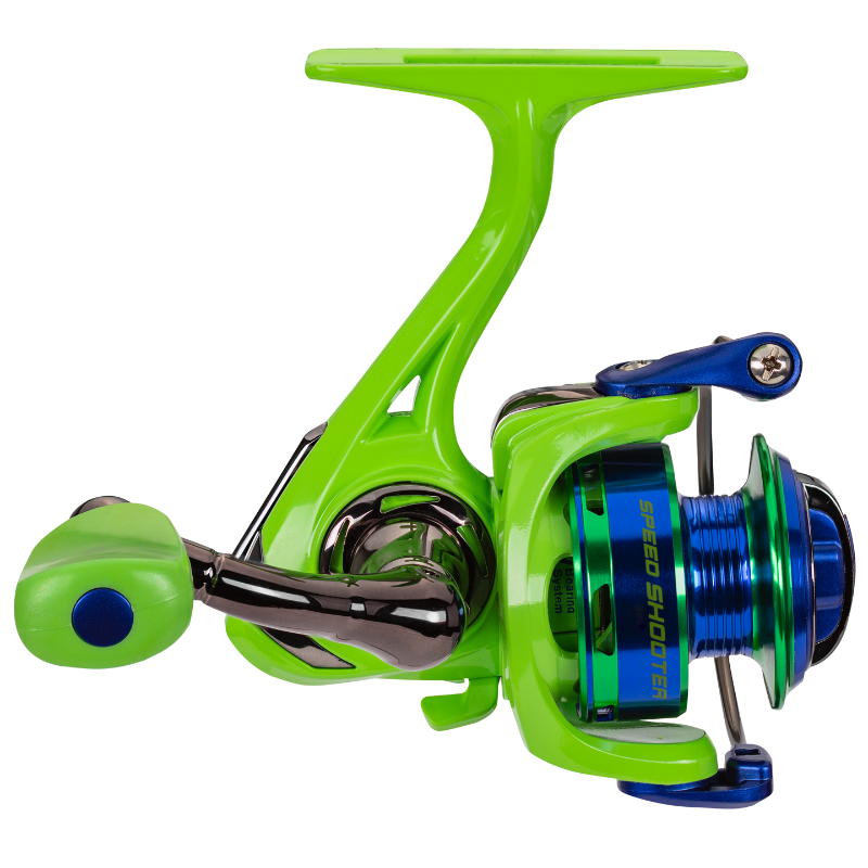 The Speed Shooter features a quality 4-bearing smoothness with ZeroReverse anti-reverse. The body is lightweight graphite and houses a thin compact gearbox. The skeletal graphite rotor is light but strong. The ported spool is double-anodized aluminum. The aluminum bail provides a reliable performance as it flips open and closed. The reel’s collapsible handle can be adjusted to right or left-hand retrieve. The color-matched knob adds form, function and color to the perfect shooting setup.